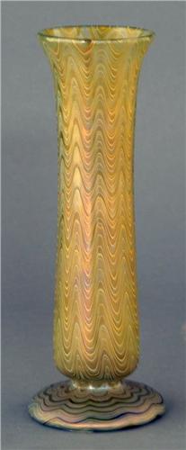 1 ART GLASS VASE, attributed to Loetz, with draped decoration 10" high, packing and shipping $30