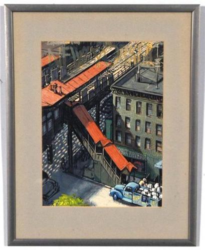 1 ARTHUR GETZ, 12 3/4 inch x 9 1/4 inch watercolor, New York Street Scene, CONDITION: EXCELLENT, PACKING AND SHIPPING (excluding insurance) AVAILABLE WITHIN CONTINENTAL U.S. BY FAIRFIELD AUCTION FOR $30 . BUYER MAY ALSO PICK-UP OR USE A 3RD PARTY FOR PACKING AND SHIPPING
