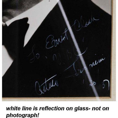 1 ARTURO TOSCONINI SIGNED<BR>PHOTOGRAPH<BR>9"x7" sight <BR>CONDITION REPORT: 1/4" tear extending into sight from left edge.<BR>PACKING AND SHIPPING - $30 excluding insurance within the Continental USA only (International shipping through 3rd party shipper. We recommend the Newtown UPS Store.)