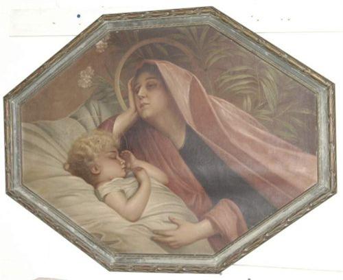 1 ATTRIBUTED TO PATZELT, 27"x36" hexagonal o/c, resting Madonna and Christ Child, circa 1920, CONDITION: dirty, otherwise very good.
