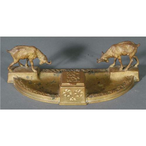 1 AUSTRIAN GILT BRONZE STANDISH with stags, 1