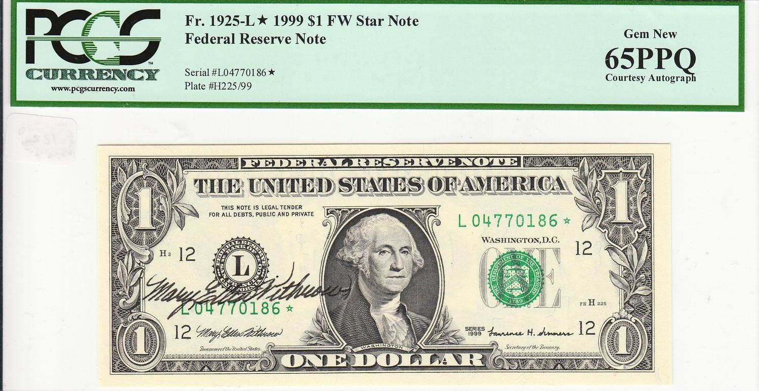 $1 AUTOGRAPH STAR FRN PCGS 65 PPQ
