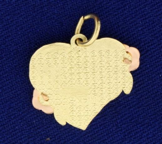In 14k yellow and rose gold, 3/4 inch long with bale. 1.3g.