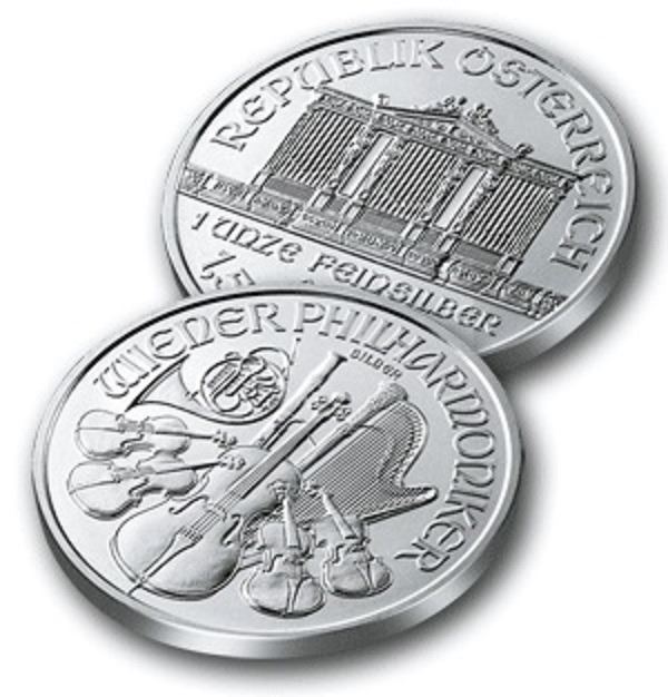 A 1oz. Silver Round from the Austrian Mint depicting the Philharmonic Orchestra Design.