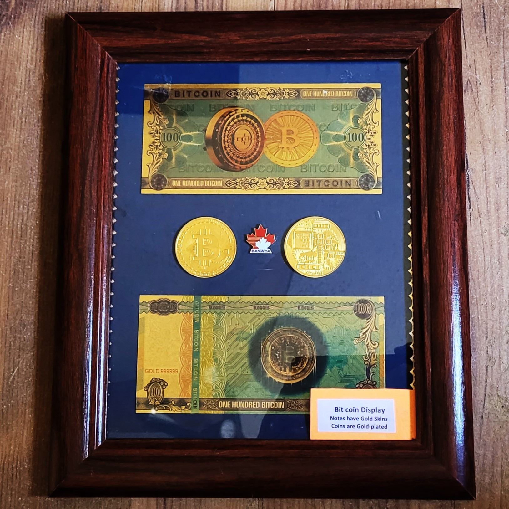 1) BIT COIN DISPLAY , FRAMED UNDER GLASS, DISPLAY