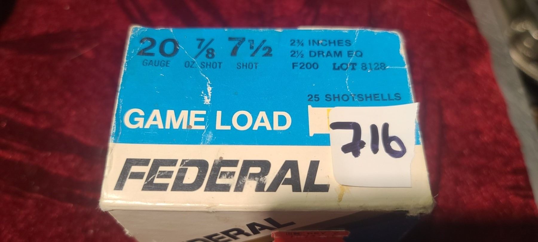 1 BOX OF FEDERAL 20 GA 7 1/2 SHOT SHOT SHELLS