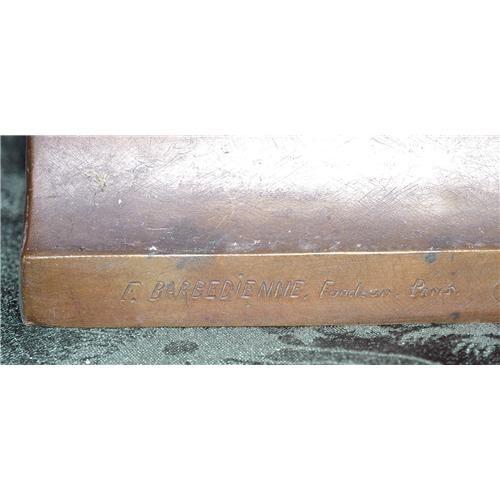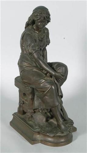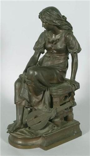 1 BRONZE FIGURE OF MAIDEN, signed, E. Aizelin, titled, "Mignon", 21" high, with foundry mark on edge of base, F. Barbedienne, Foundeur, Paris, CONDITION: EXCELLENT, but patina dull with some areas of wear,