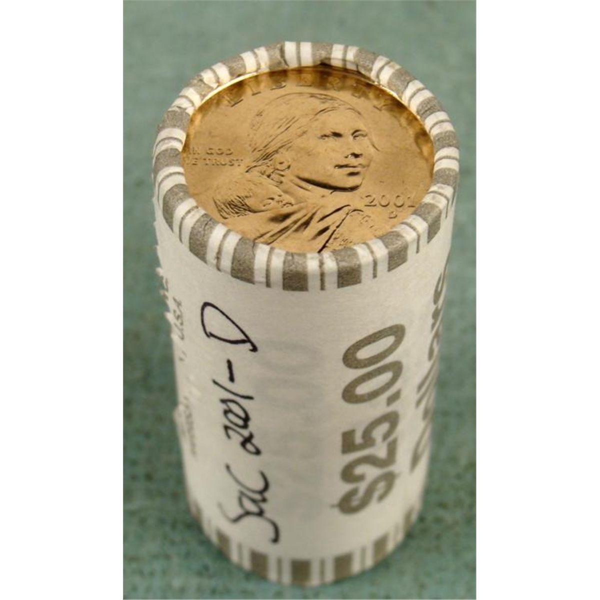 This is an original bank wrapped roll of 2001-D Sacagawea dollars, containing 25 coins.  * Condition: Mint, Gem uncirculatedNote: Roll you receive may look slightly different from the one shown *