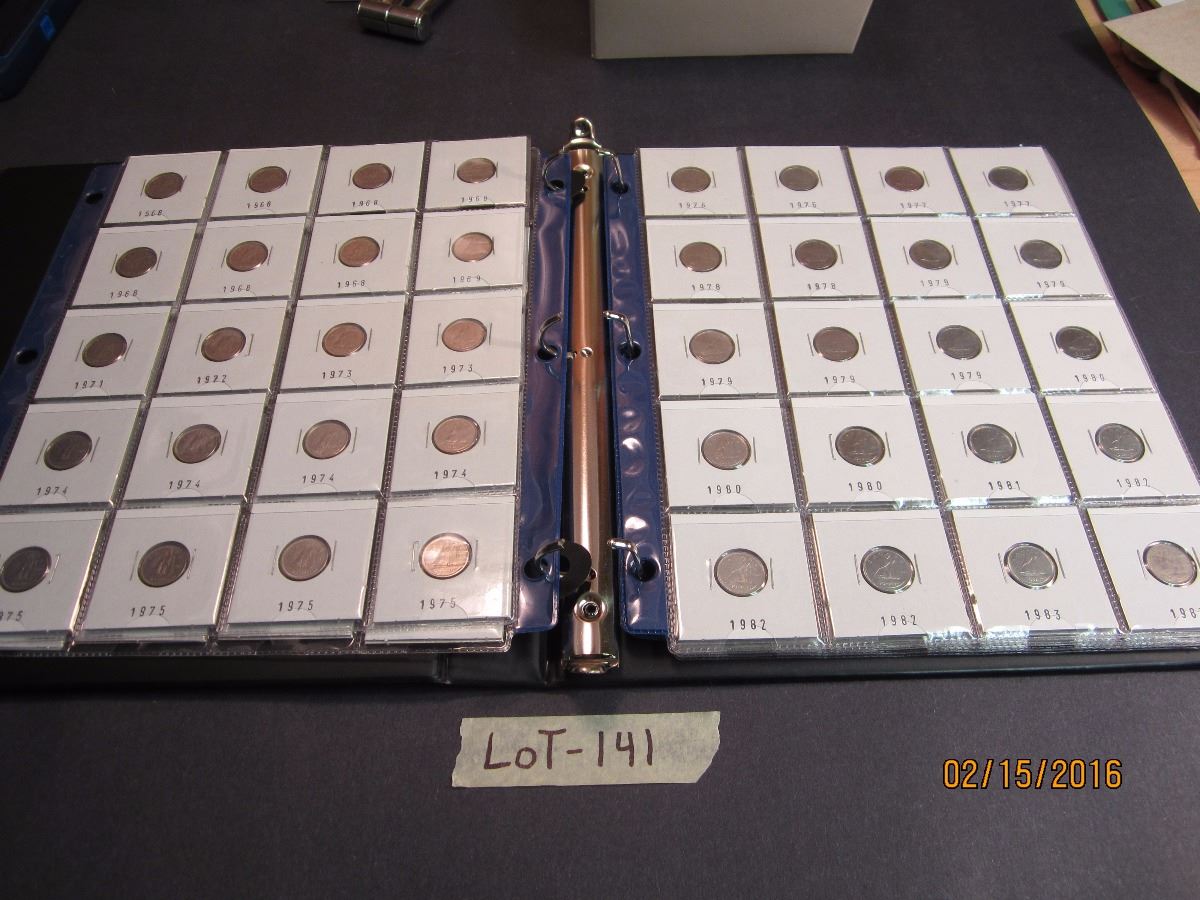 1 Binder of assorted Canadian Dimes. Dated 1968 - 2005. 118