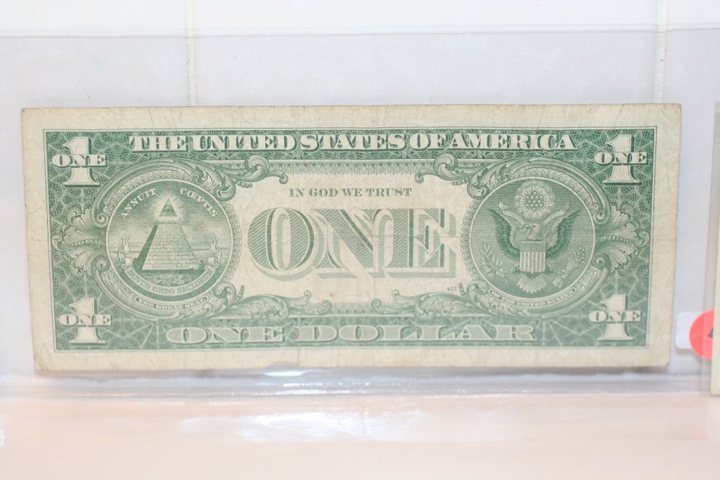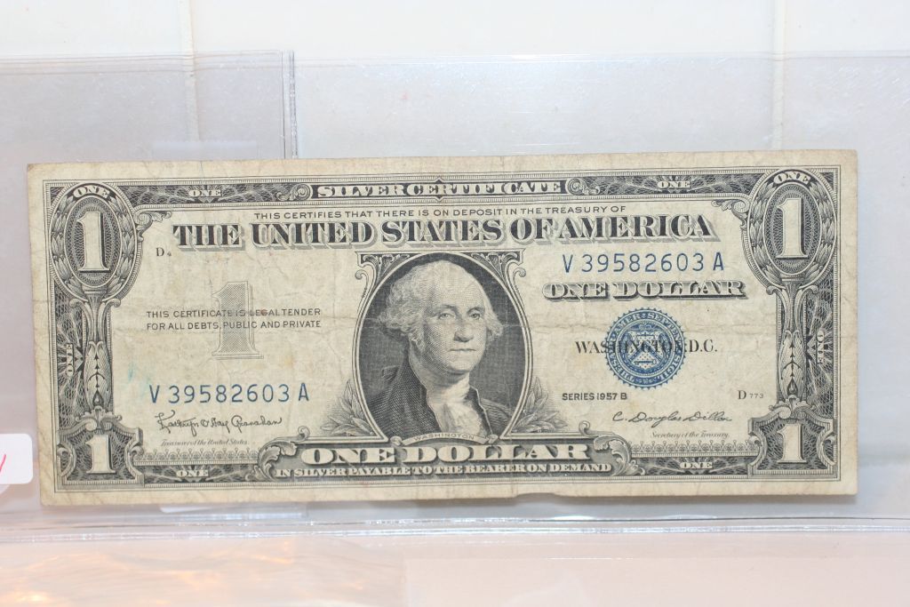 This lot is a $1 blue seal silver certificate series 1957-b