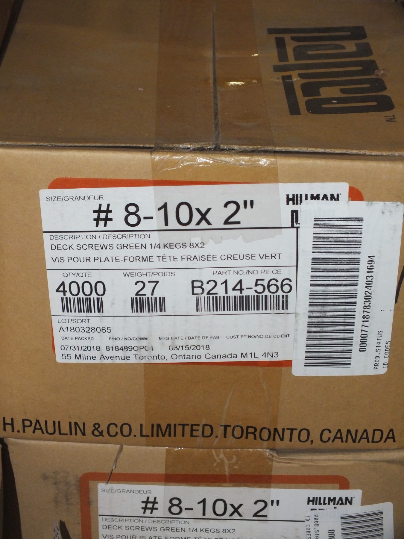 1 Box Of #8-10 x2 Green Deck Screws, 4000pcs in the box...new...sold as is / where is.