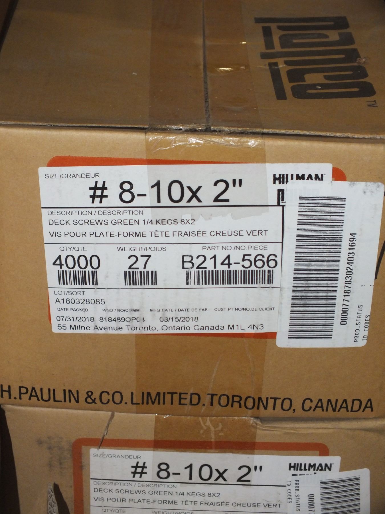 1 Box Of #8-10 x2 Green Deck Screws, 4000pcs in the box...new...sold as is / where is.