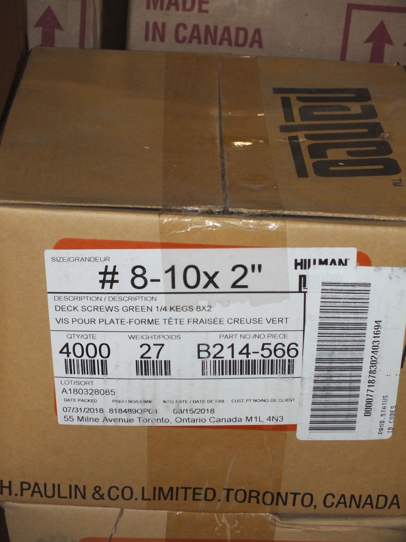 1 Box Of #8-10 x2 Green Deck Screws, 4000pcs in the box...new...sold as is / where is.