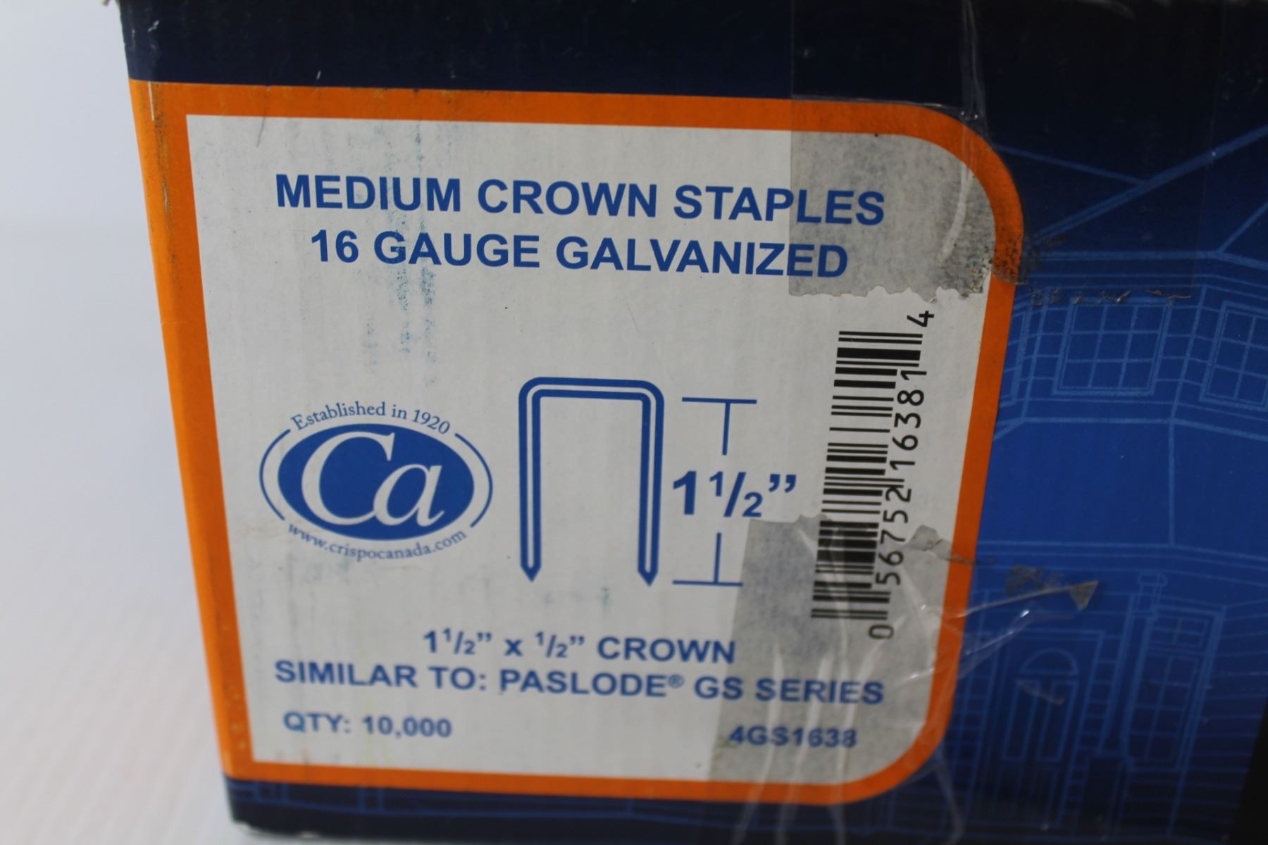 (1) Box of Crisp Air- Medium Crown Staples 16 gauge- (1 1/2'')