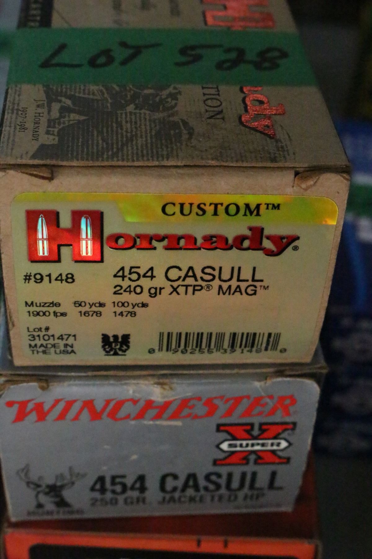 1 Box of Factory Winchester 454 Casull Live Rnds, 250 gr., Jacketed HP & 1 Box of Factory Hornady 454 Casull Live Rnds, 240 gr., XTP Magnum