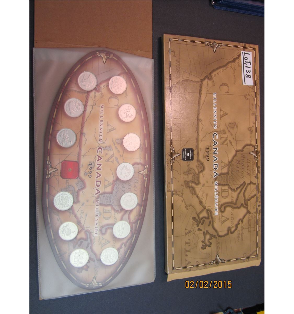 1 - Brilliant uncirculated Royal Canadian Mint 1999 .25 cent Millennium Box Set. 13 coins in total. Mint condition. Coins reflect development, milestones, discoveries, inventions, and achievements in past millennium, which helped shape today's Canada.