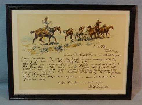 1 C. M. Russell print, Letter to George W. Farr, 9" x 14", unframed