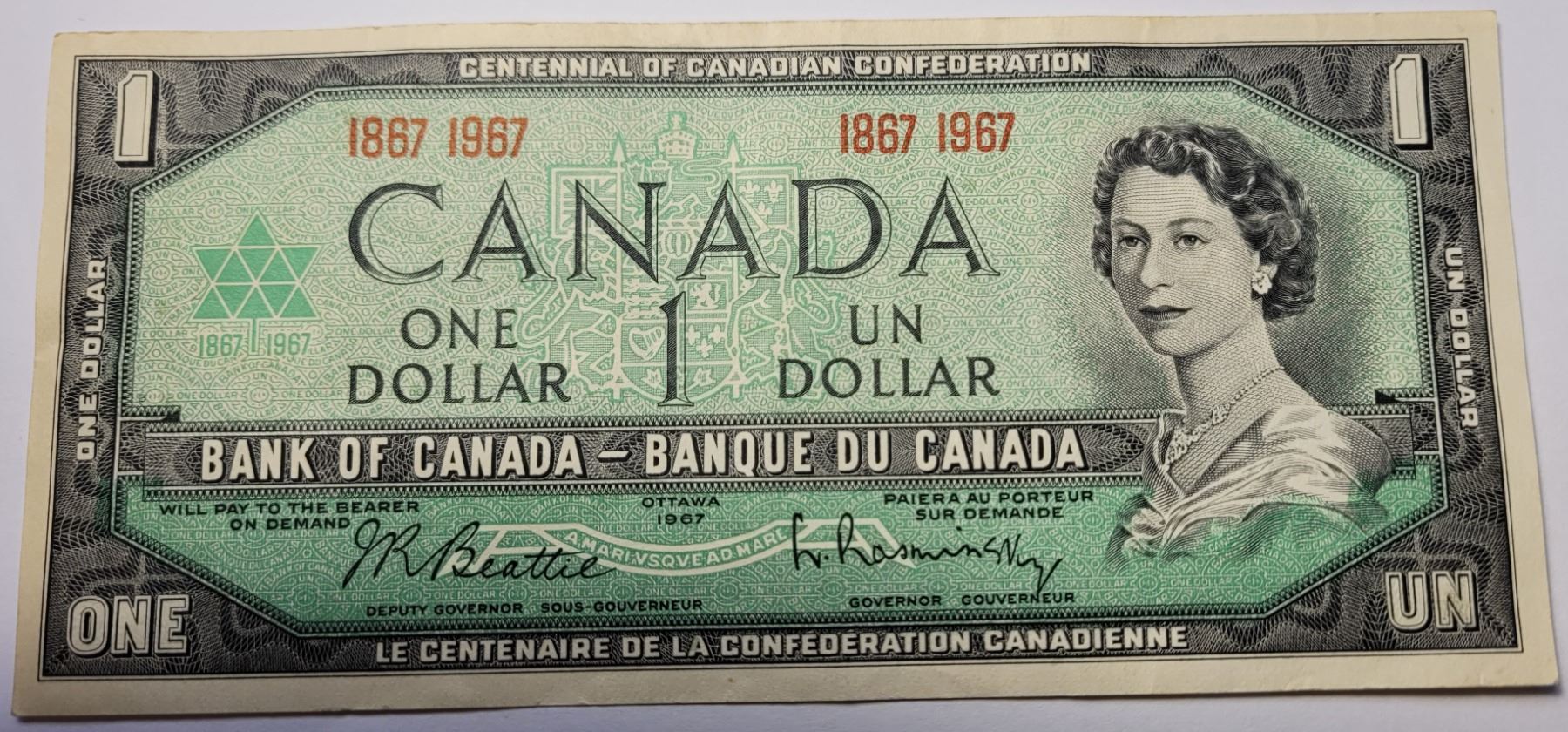 1) CANADIAN $1.00 BANKNOT COMMERATING CENTENNIAL,