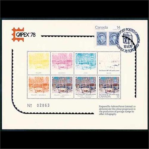 Description: Set of the 3 printers souvenir sheets (Philatelic Exhibition cards) issued for the 1978 CAPEX stamp show, each one "first day cancelled" with Scott 754 (14c Capex issue.) A very scarce group as only 75 sets were prepared!