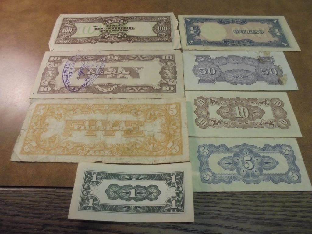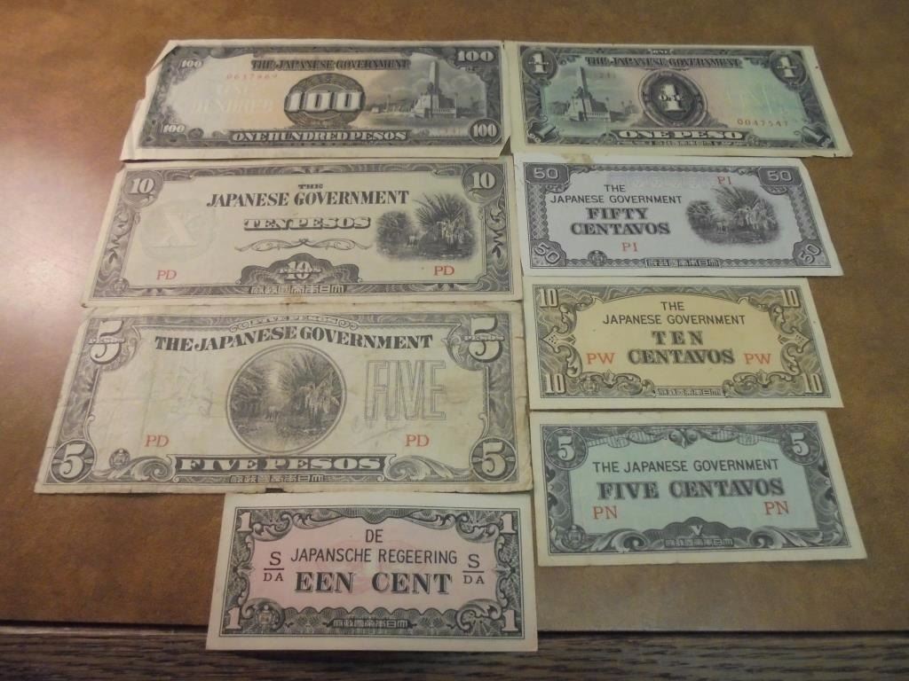 WWII JAPANESE INVASION CURRENCY. 8 PIECES