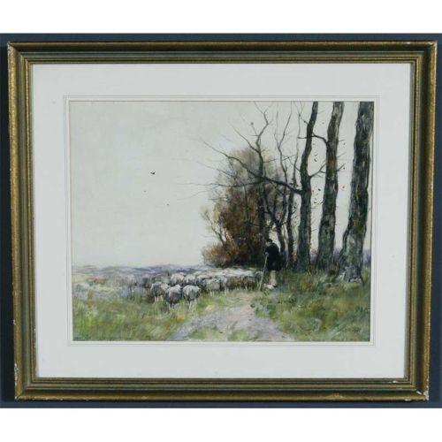1 CHARLES GRUPPE<BR>Shepard with Flock<BR>16"x20" gouache <BR>CONDITION REPORT: excellent.<BR>PACKING AND SHIPPING - see recommended.