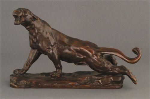 1 CHARLES VALTON BRONZE PANTHER 17" long, late 19th century, packing and shipping $40