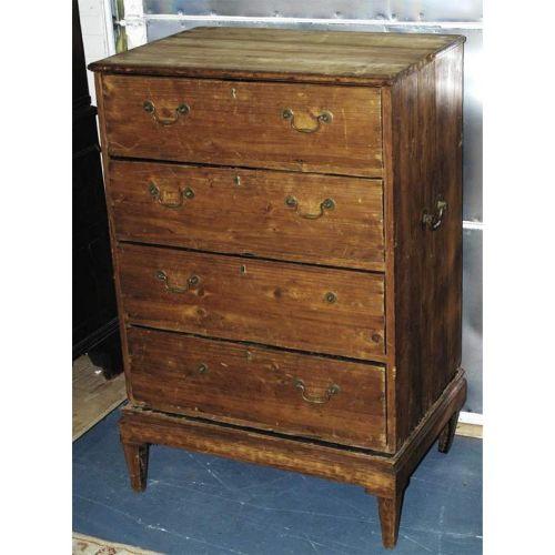 1 CHINESE EXPORT CAMPAIGN CHEST<BR>ON STAND<BR>with handles on side,<BR>46"x30"x20", 19th century<BR>(originally black lacquered) <BR>CONDITION REPORT: stripped, lacking trim.<BR>PACKING AND SHIPPING - see recommended.