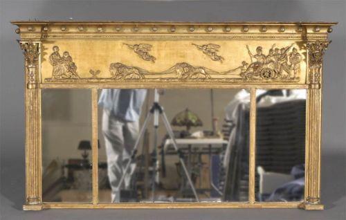 1 CLASSICAL 3-PART GILTWOOD OVERMANTLE MIRROR