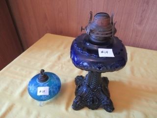 1 - COBALT BLUE LEAF PATTERN BASE & BLUE MINI LAMP BASE
