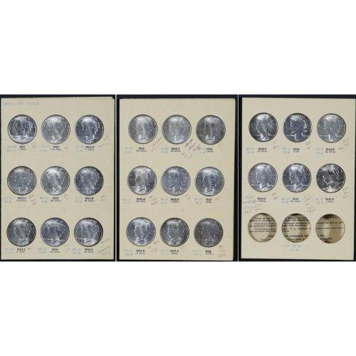1 COLLECTION OF (24) PEACE<BR>DOLLARS including several<BR>scarcer examples incl. 1925,1925-S, 1927-D, 1927-S, 1928, 1928-S, 1934-S, 1935-S, <BR>CONDITION REPORT: mixed.<BR>PACKING AND SHIPPING -$20 excluding insurance within the Continental USA only (International shipping through 3rd party shipper. We recommend the Newtown UPS Store.)