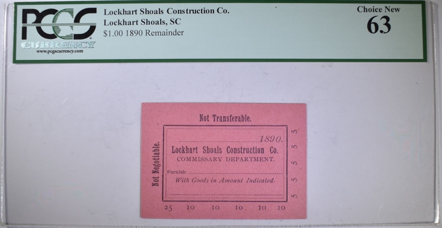 CONSTRUCTION CO, SC (1890 REMAINDER) PCGS 63 ESTIMATE $85 - $95.