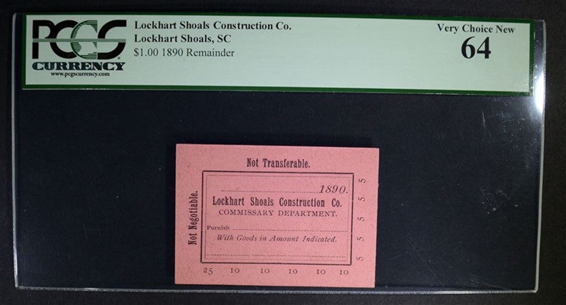 CONSTRUCTION CO, SC (1890 REMAINDER) PCGS 64 ESTIMATE $90 - $100.