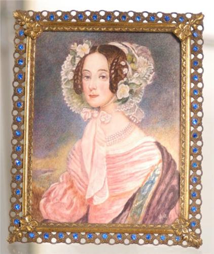 1 CONTINENTAL MINIATURE PORTRAIT in an oval frame with jeweled border, 3 1/2" high late 19th century, packing and shipping $20