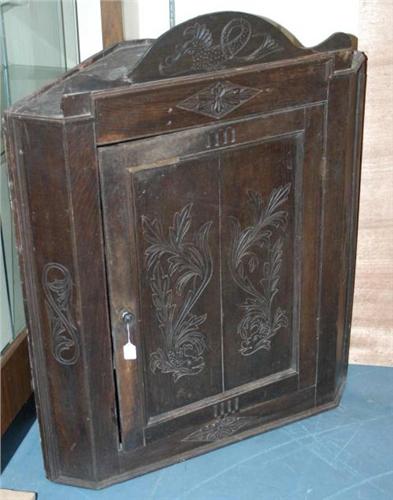 1 CONTINENTAL OAK HANGING CORNER CABINET, 19th century,