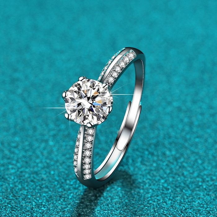 925S HEXAGONAL STYLE RING OPEN ADJUSTABLE SIZE, VVS D COLOR GRADE CENTER MOISSANITE STONE. COMES IN BOX. X011
