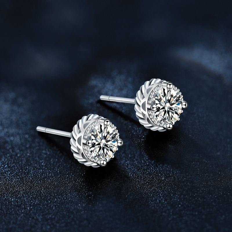 CUT 925S EARRINGS WITH VVS D COLOR GRADE MOISSANITE CENTER STONE. COMES WITH ITS GRA CERTIFICATE. XEA009