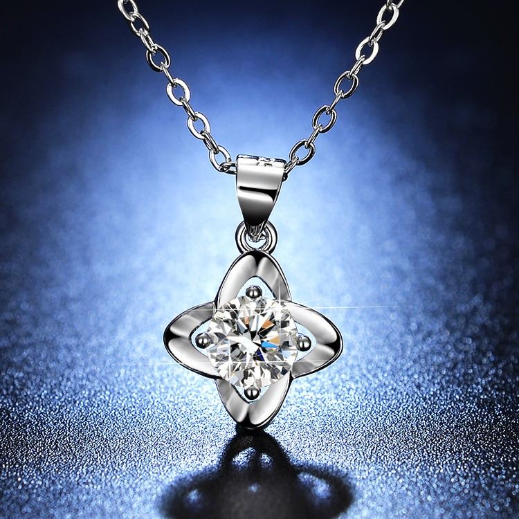 4 CLAWS CLOVER STYLE WITH VVS D COLOR GRADE CENTER MOISSANITE STONE. COMES IN BOX WITH ITS CERTIFICATE. C011