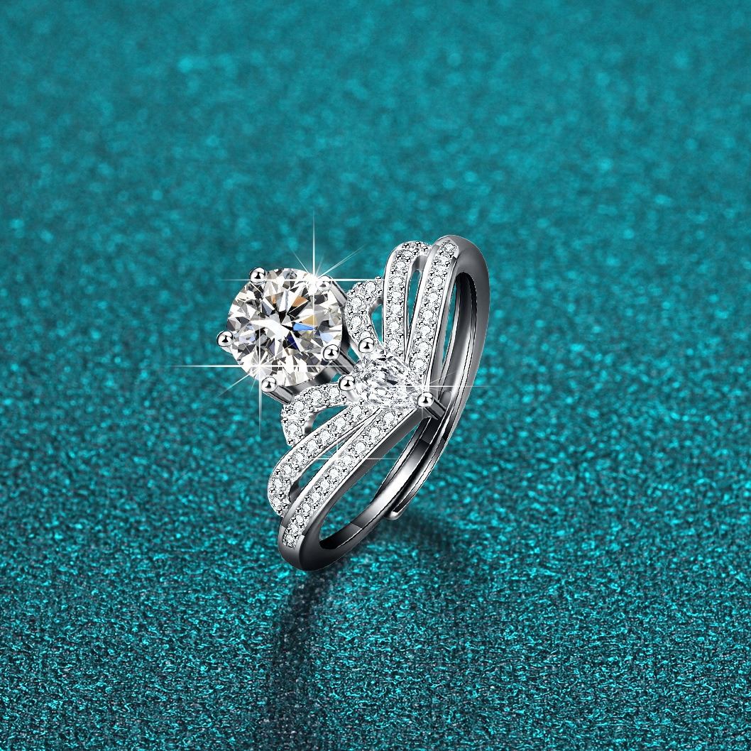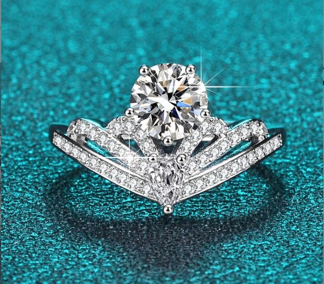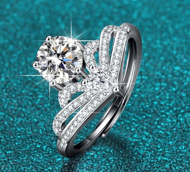 CROWN SHAPE LUXURY RING WITH VVS D COLOR GRADE MOISSANITE CENTER STONE. COMES IN BOX. X081