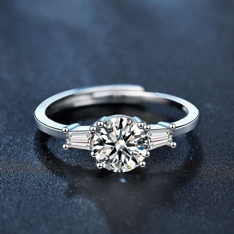 925S OPEN ADJUSTIBLE SIZE LUXURY RING WITH VVS D COLOR GRADE MOISSANITE STONE. COMES WITH ITS GRA CERTIFICATE. XJZ047