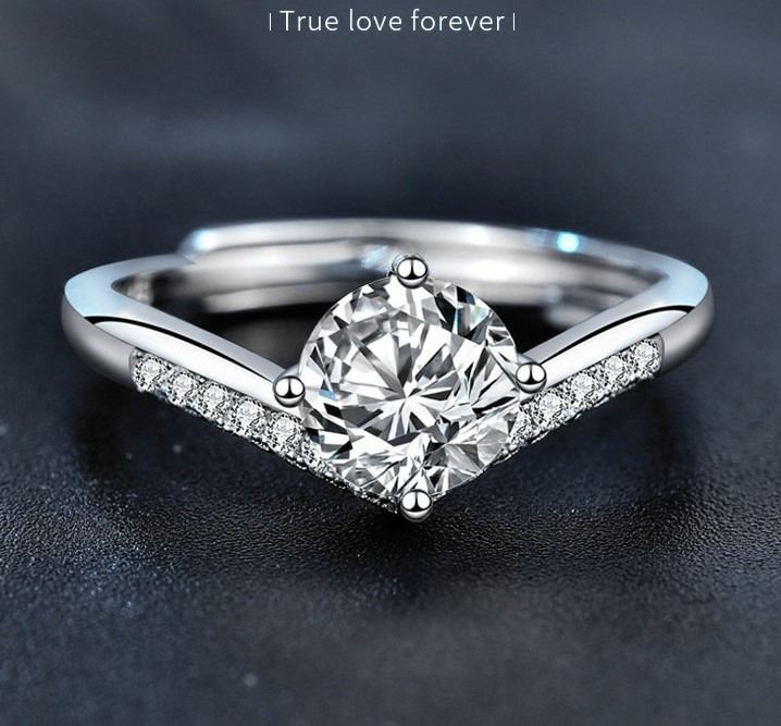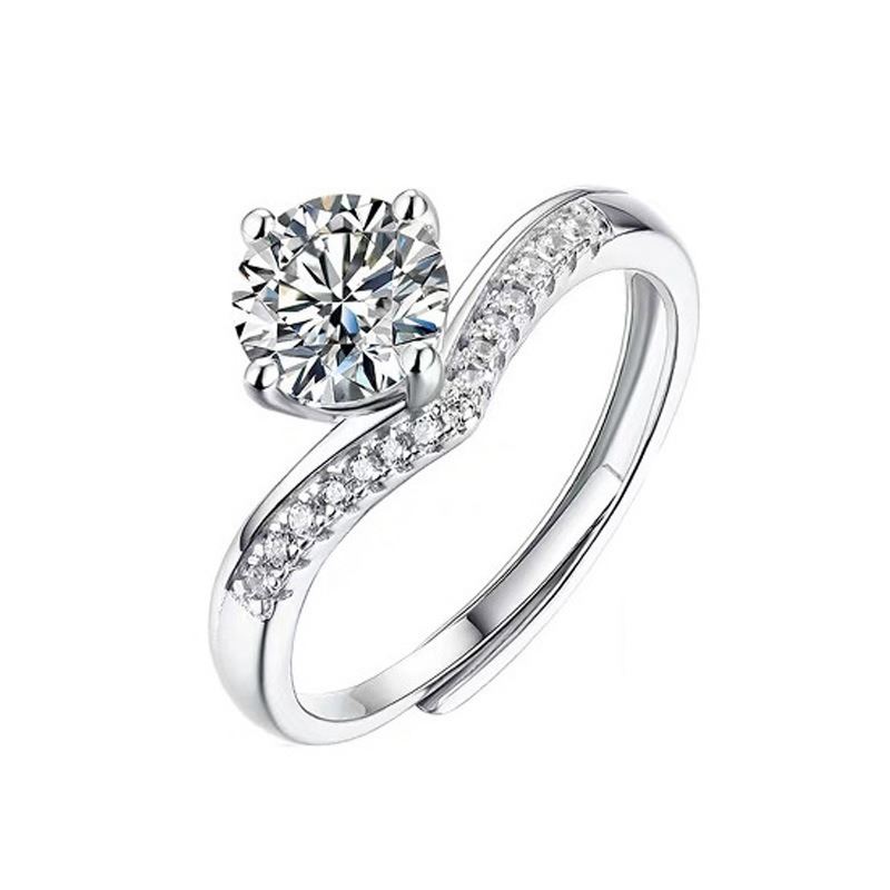 OPEN ADJUSTIBLE SIZE LUXURY RING WITH VVS D COLOR GRADE MOISSANITE STONE. COMES IN BOX WITH ITS GRA CERTIFICATE. XJZ031