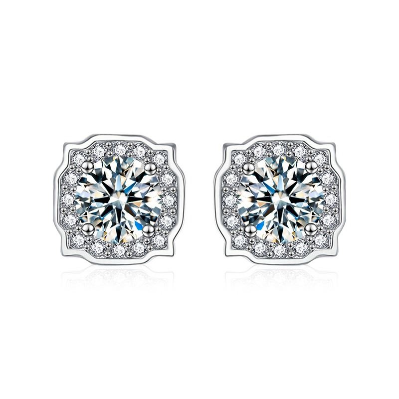 CUT 925S EARRINGS WITH VVS D COLOR GRADE MOISSANITE CENTER STONE. COMES WITH ITS GRA CERTIFICATE. XEZ057