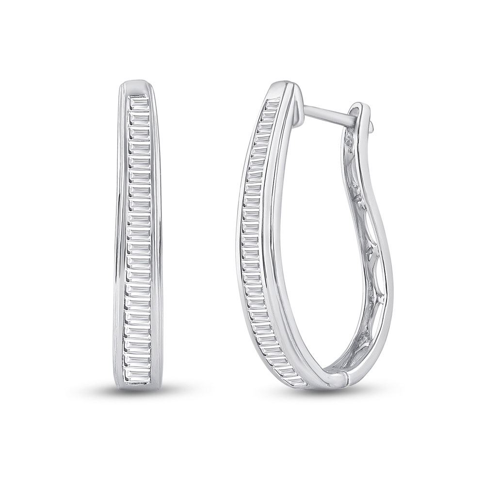 14kt White Gold Womens Baguette Diamond Hoop Earrings 1.00 Cttw