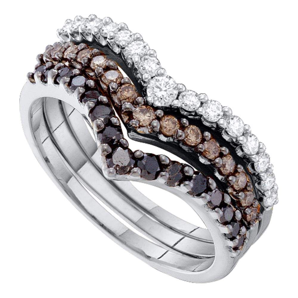 REF-79K4W- SKU: GD52334 ---- 1 CTW Black Color Diamond Chevron Stackable 3-piece Ring 14KT White Gold