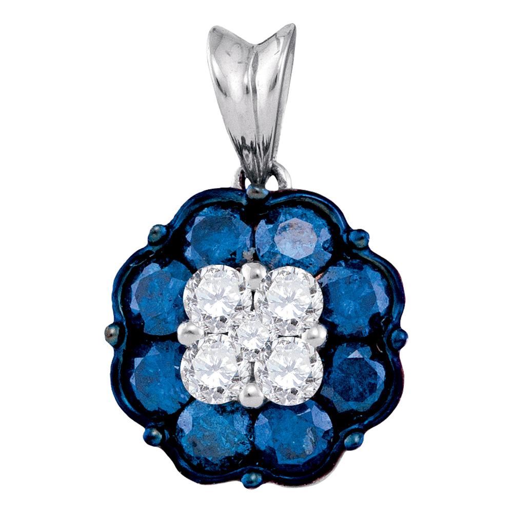 REF-52W4K- SKU: GD84650 ---- 1 CTW Blue Color Diamond Cluster Pendant 10KT White Gold