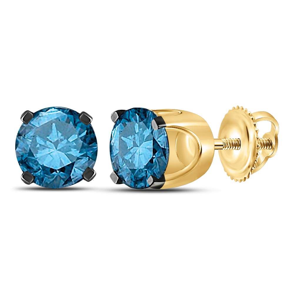 REF-63X2Y- SKU: GD84567 ---- 1 CTW Blue Color Diamond Solitaire Stud Earrings 10KT Yellow Gold