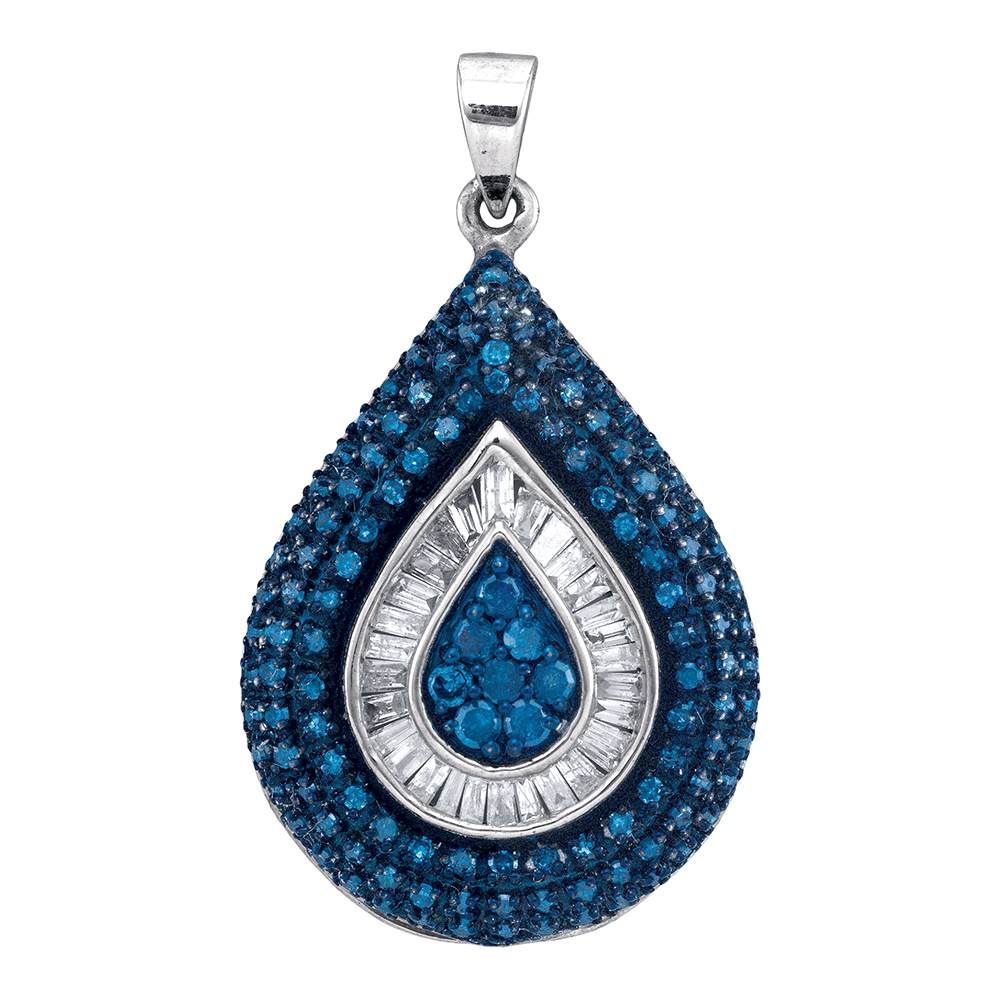 REF-44X9Y- SKU: GD88930 ---- 1 CTW Blue Color Diamond Teardrop Pendant 10KT White Gold
