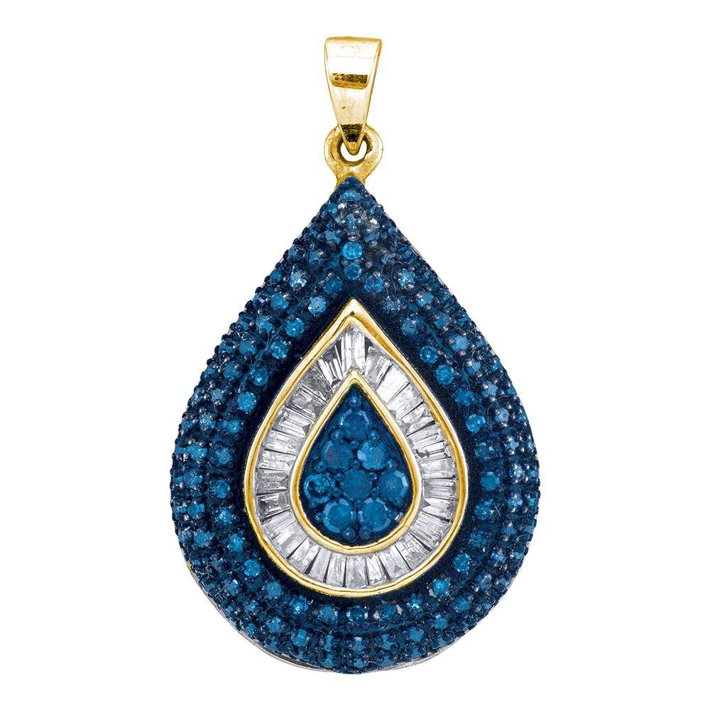 REF-44X9Y- SKU: GD88932 ---- 1 CTW Blue Color Diamond Teardrop Pendant 10KT Yellow Gold