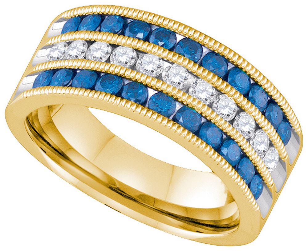 REF-95T9K ---- 1 CTW Blue Colored Diamond Milgrain Striped Band 10K Yellow Gold - SKU: GD86571