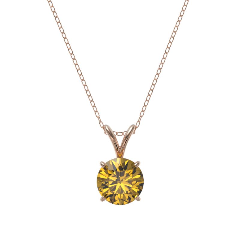 REF-147A2X -33191 ---- 1 CTW Certified Intense Yellow SI Diamond Solitaire Necklace 10K Rose Gold ---- Luxury Designer Brand Necklace Appraised at $10,800 Certificate Number US33191 10k Rose gold, Necklace Size is 16 Incehs, Necklace measuring approx. Uniform, weighing in total approx. 2 grams. Made in the USA and is stamped 10k, Main stone 1 carat total weight containing 1 pieces of Intense Fancy Yellow color with SI quality Round shape cut Diamond , Stone #2 carat total weight containing pieces of color with quality shape cut