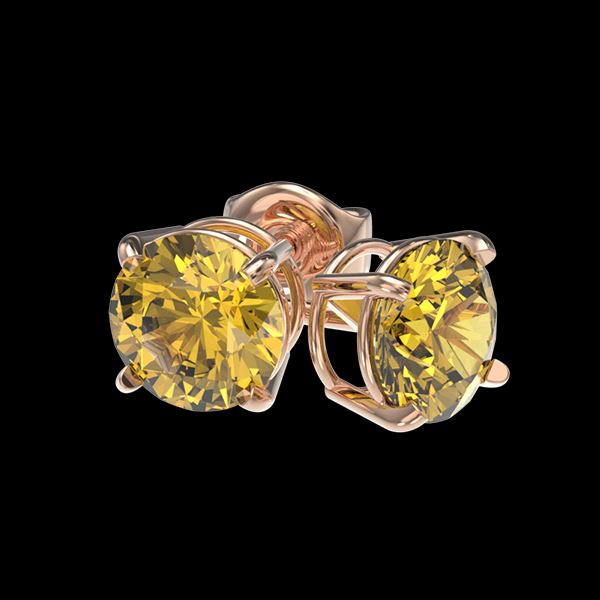 REF-116H3A -33058 ---- 1 CTW Certified Intense Yellow SI Diamond Solitaire Stud Earrings 10K Rose Gold ---- Luxury Designer Brand Earring Appraised at $8,550 Certificate Number US33058 10k Rose gold, Earring Size is Larger, Earring measuring approx. Uniform, weighing in total approx. 1.3 grams. Made in the USA and is stamped 10k, Main stone 1 carat total weight containing 2 pieces of Intense Fancy Yellow color with SI quality Round shape cut Diamond , Stone #2 carat total weight containing pieces of color with quality shape cut